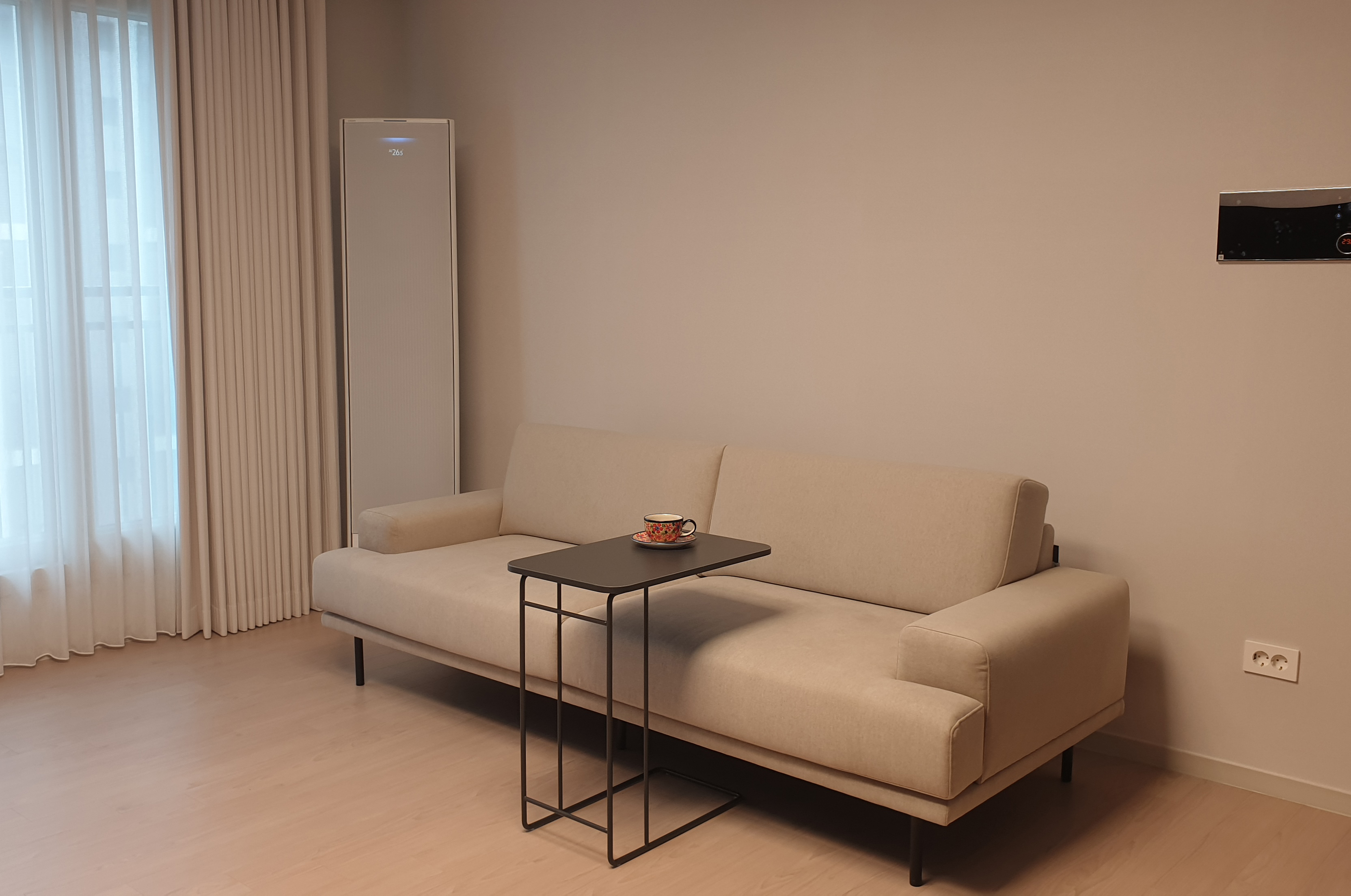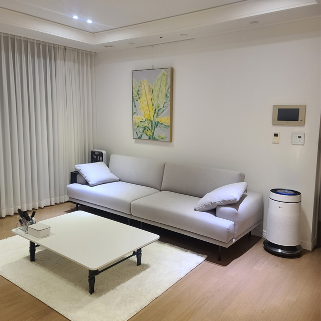 이사와서 막 짐 옮기고 대충 정리된후 찍었던 첫 사진. 지금은 있는 커튼, 에어컨, 테이블도 없는 텅빈 거실 이었지만 저때도 좋았다 🎈
